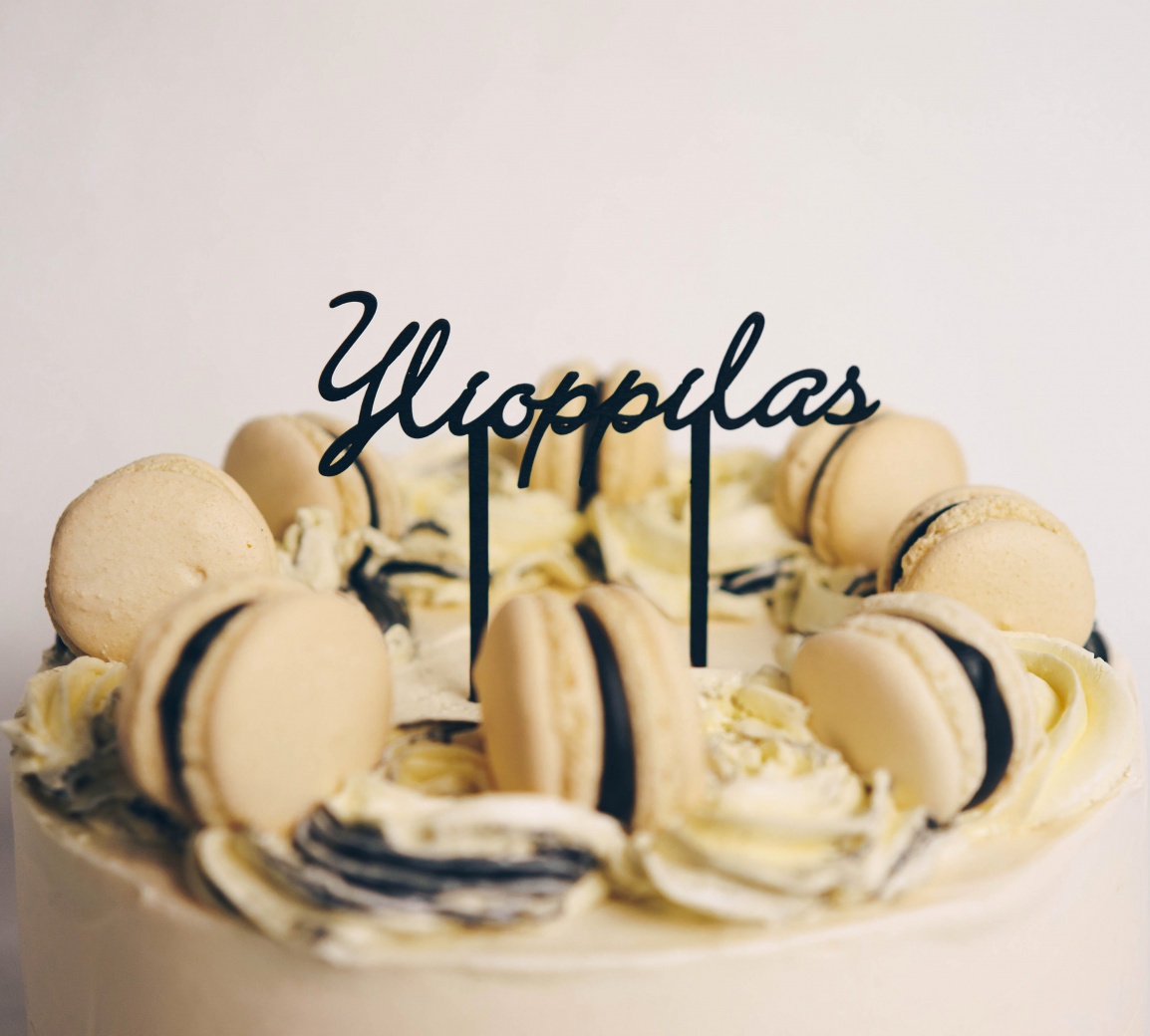 Kakkuun voidaan laittaa ylioppilas- tai rippikoriste haluttaessa.