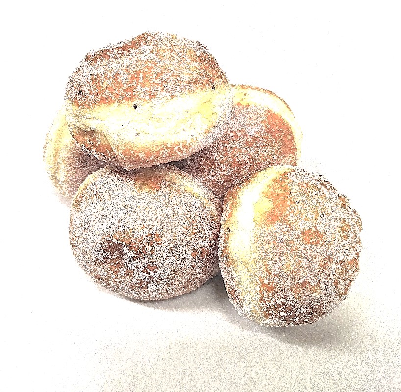 Vaniljakreemitäytteinen munkki. Laktoosittomista raaka-aineista valmistettu.