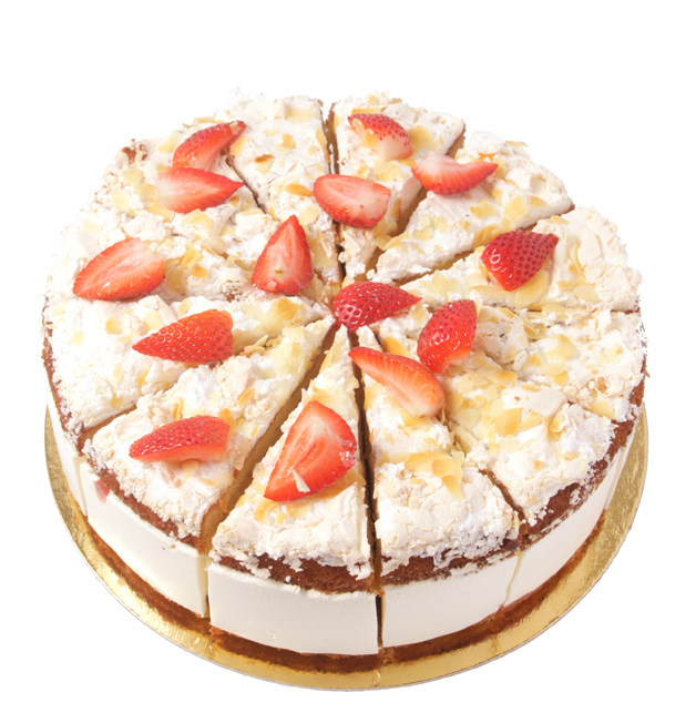 pohjat (voi, maito, riisijauho, perunajauho, tapiokatärkkelys, sokeri, kananmuna, leivinjauhe, vaniljasokeri), vanilliinikreemi (sokeri, muunnettu tärkkelys, happamuudensäätöaine E170, happamuudensäätöaine E327, palmuöljy, maitoproteiini, sakeuttamisaine E401, kananmunanvalkuaisjauhe, aromit, glukoosisiirappi, suola, väri E160a), kerma, hyydykejauhe (sokeri, muunnettu tärkkelys (peruna), gelatiini, glukoosisiirappi, aromi), mansikkasose, mansikkatäyte (sokeri, vesi, mansikka, muunnettu tärkkelys E1422, hyytelöimisaine E440, happamuudensäätöaineet E330 ja E333, aromi, säilöntäaineet E202 ja E211, värit E120 ja E150c), manteli