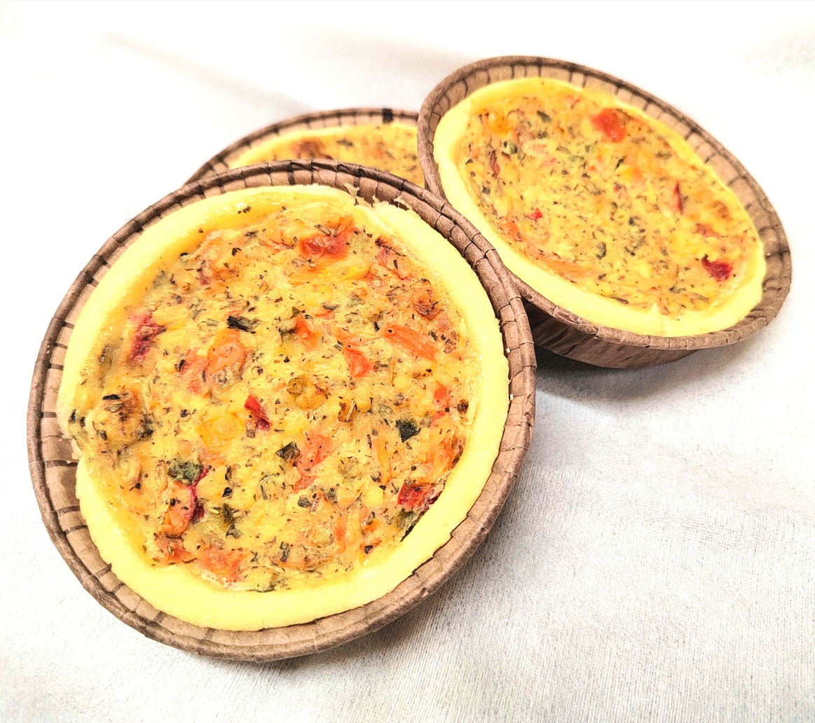 Vegaani kasvispiiranen sisältää tomaattia, porkkanaa, sipulia, paprikaa, yrttejä, valkosipulia, Amerikan kurkkua ja purjoa sekä vegaanijuustoa.
